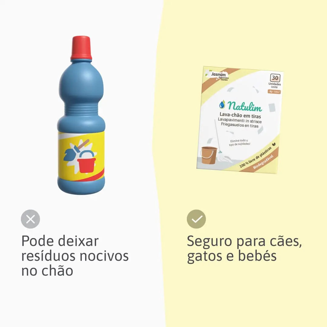 As tiras para o chão Natulim têm um pH neutro, o que as torna suaves, mas eficazes na limpeza diária.